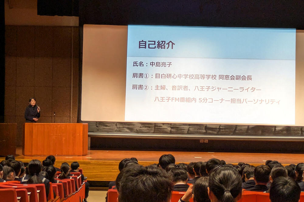 昨年に続き学校から同窓会に講演のご依頼をいただき、本年は副会長の中島亮子さんが登壇しました。