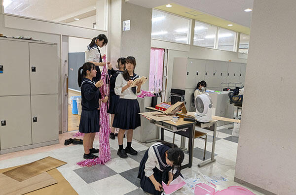 行事 2025.09.12 いざ!桐陽祭‼ 昨日(9/11)の午後・今日(9/12)と桐陽祭に向けた準備が進められました。明日(9/13)・明後日(9/14)は桐陽祭。当日は教科や林間学校の展示、飲食物販売、部活による発表・演技、イベント、スピーチなどを行います。 皆様のご来場を心よりお待ちしております。