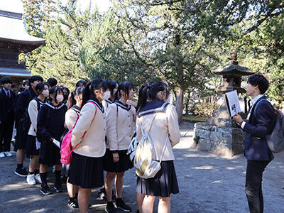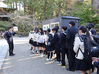 実際に現地に赴いて、歴史的名所を自分の目で見る!という経験は、生徒たちにとってはとても新鮮だったようで、とても生き生きとした様子が見受けられました。班別行動でもスマホのルート検索等に頼らず、地図を見ながら班員同士で協力して市内を歩く姿が印象的でした。教室の中ではできない体験をたくさん経験して、大変充実した一日になったようです。