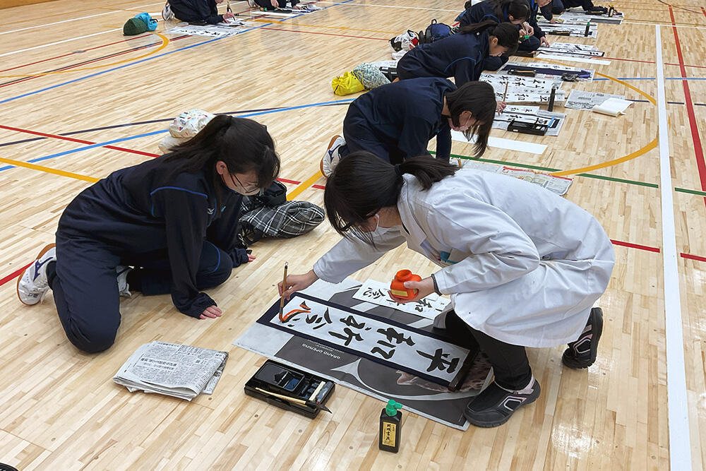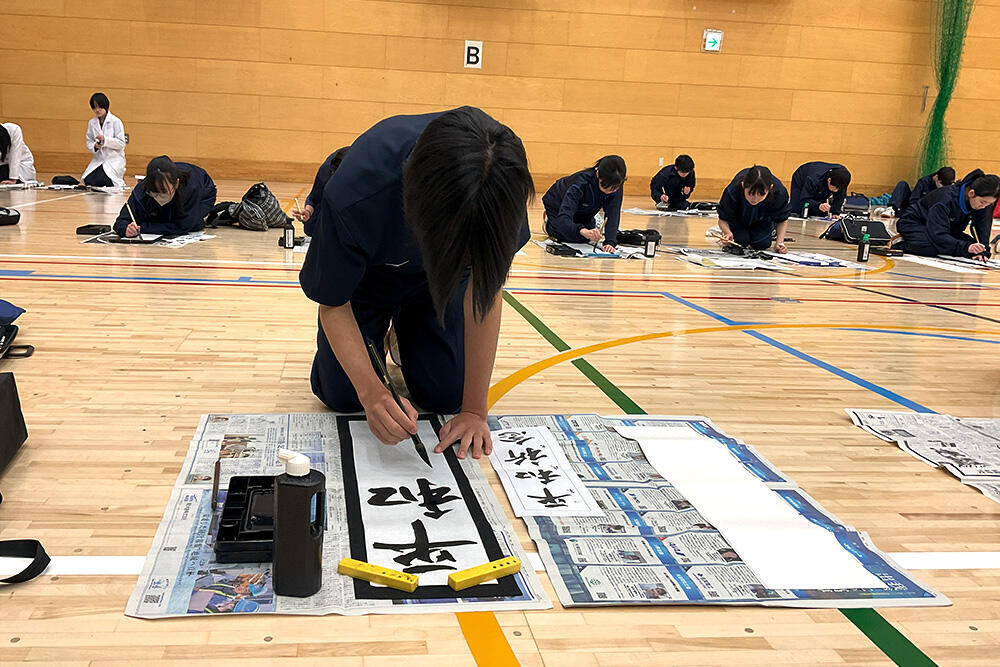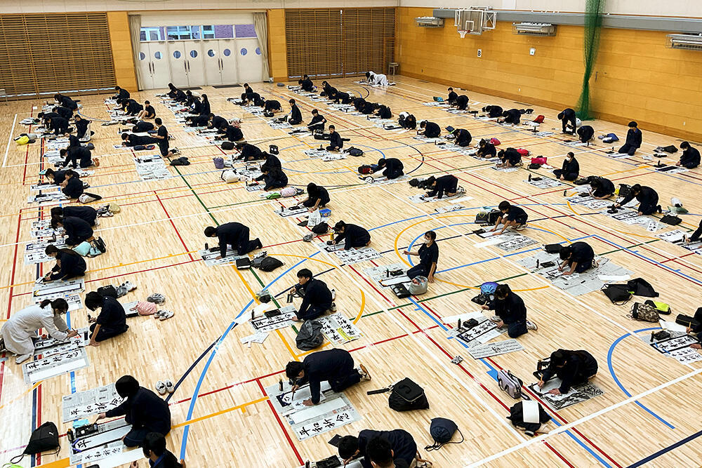 生徒たちは黙々と筆を走らせ、より良い作品を書き上げようとする姿が見られました。