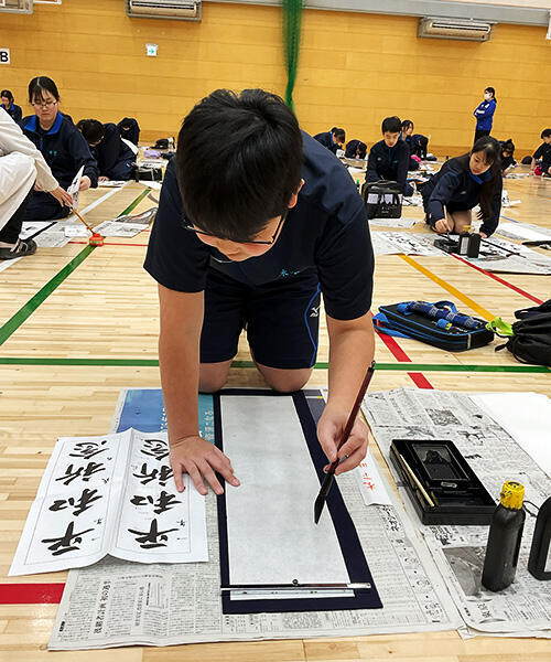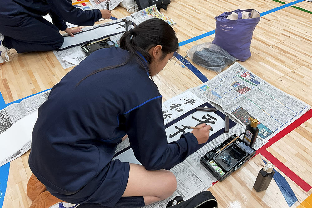 生徒たちは黙々と「止め」や「払い」を意識しながら、より良い作品を書き上げようとする姿が見られました。