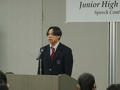 1月24日(土)、第49回目の中学スピーチコンテストの予選が行われ、中学1年生から3年生の全学年の生徒たちが、英語でのスピーチを行いました。
