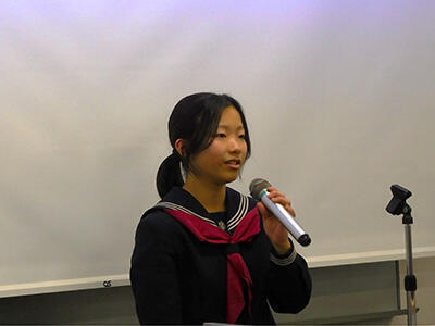 生徒たちはひとりひとりがマイクの前に立ち、事前の授業や休み時間を費やして準備したスピーチを披露しました。なかには緊張でうまく言葉が出てこない生徒も見受けられましたが、練習の成果を発揮しようと奮闘する姿に、それぞれの成長が感じられました。