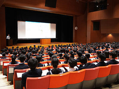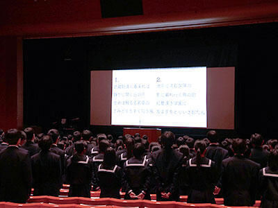 学年集会では、学年主任や各分掌主任による講話、学習支援センターの先生からの学校生活における決まりや心構えの講話をいただきました。生徒たちはメモを取りながら一生懸命に聞いていました。