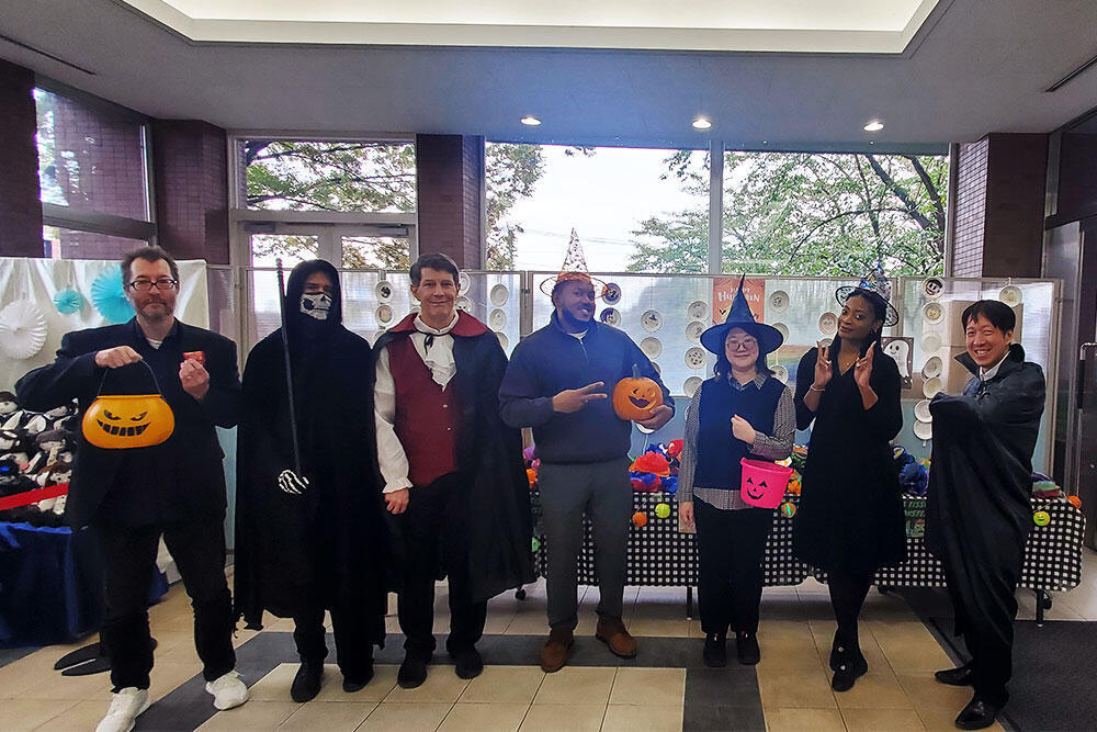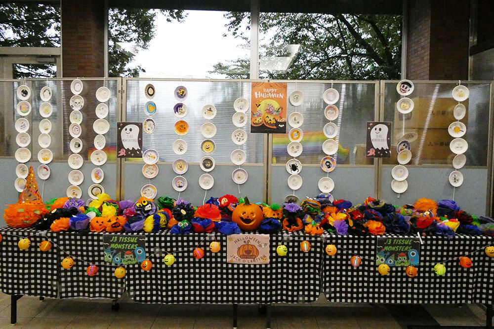 10月31日、本校にてハロウィンの行事が開催されました。当日はACEの先生方が仮装し、生徒たちにハロウィンの文化を伝えました。生徒達はハロウィンにちなんだゲームやアクティビティを楽しみ、最後はエントランスや図書室前に飾るデコレーションを一生懸命に制作していました。ネイティブの先生とのやり取りを通して、英語で自ら質問する力が毎年着実に伸びているのを感じ、大変嬉しく思っています。