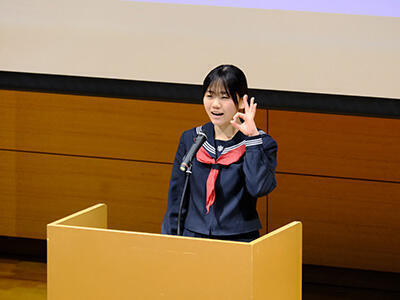 1年生は初めての大舞台に緊張しながらも、自分の個性や好きなことを一生懸命に伝えました。予選時よりも身振り手振りを交えるなど、「相手に届けよう」とする初々しくも力強い姿勢が印象的でした。