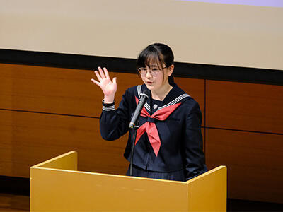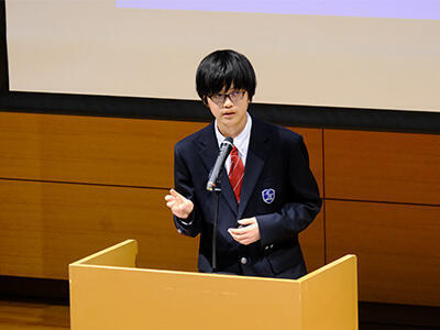 3年生最高学年として、将来の目標や想いを情熱的に語りました。3年間の集大成にふさわしい流暢な英語と、聴衆を惹きつける堂々とした立ち居振る舞いは、下級生にとって大きな憧れとなったはずです。