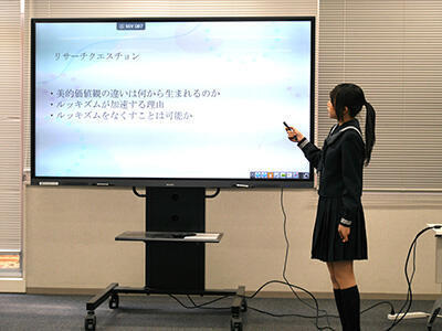 「わかりやすい発表にするために、文章を丸暗記したような読み方でなく、自然な話し方にするように工夫しました。また台本なしで練習をして、説明ができなかったところを再度調べ直したので、質疑応答でも対応ができました。」