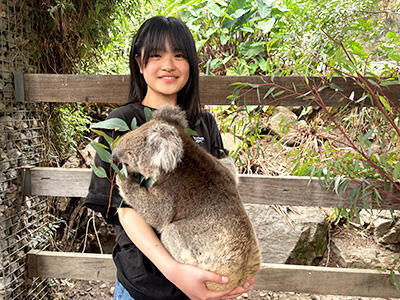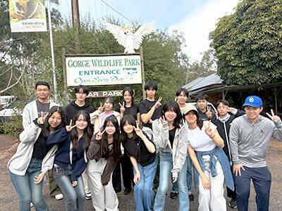バスに乗り、1時間ほどかけて最初に向かったのはGorge Wildlife Parkです。この動物園では動物たちが自由に生活しています。檻に入っていない動物もいるので、オーストラリアの動物たちと触れ合うことも可能です。カンガルーやワラビーに餌をあげたり、撫でたりすることもできました。そしてこの動物園ではコアラを抱っこすることもできます。オーストラリアの中でもコアラを抱っこできる動物園はとても少ないので、非常に貴重な体験です。生徒たちは可愛いコアラに触れ合えてとても嬉しそうでした。